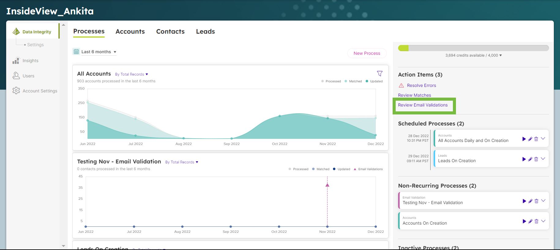 Log in to Data Integrity and click on Review Email Validations.